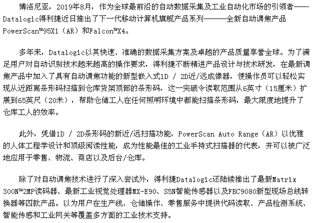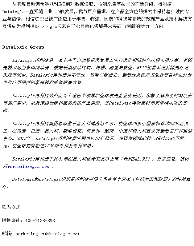 Datalogic得利捷全新自动调焦产品 开启扩展扫码新体验