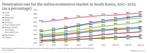 近年来,韩国线上零售额占比不断增加,网购越来越成为韩国人离不开的生活方式。
