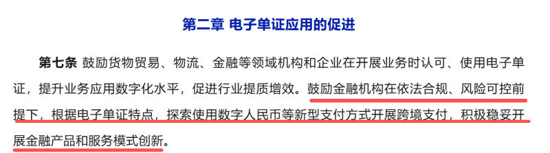 而金融领域,征求意见稿中明确,鼓励金融机构根据电子单证特点,积极稳妥开展金融产品和服务模式创新。