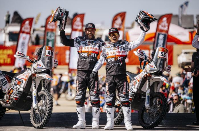 历经前四个赛段的严酷考验,零公里星之队摩托车组展现了令人钦佩的稳定性与韧性。赵宏義,十届达喀尔参赛,八次完赛,如今正式被誉为征战达喀尔十年的“传奇车手”;张敏,国家健将级车手,职业赛车生涯超25年。沙海之中,赵宏義与张敏两位车手九载同行,每一程颠簸都是刻在沙漠里的坚持;每一次出征,都是“中国车手”无畏精神的有力证明。