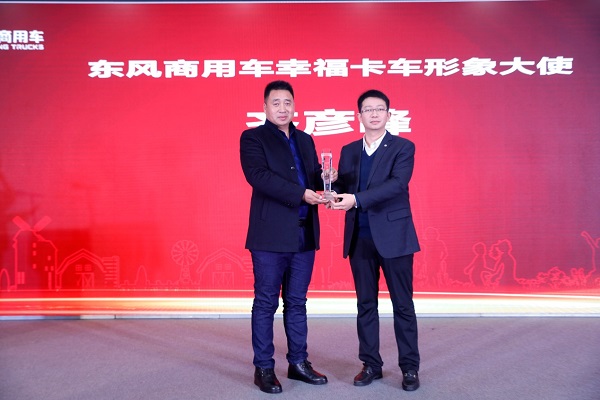 【东风商用车营销战略规划部部长谢志鹏为首位形象大使齐彦峰授牌】