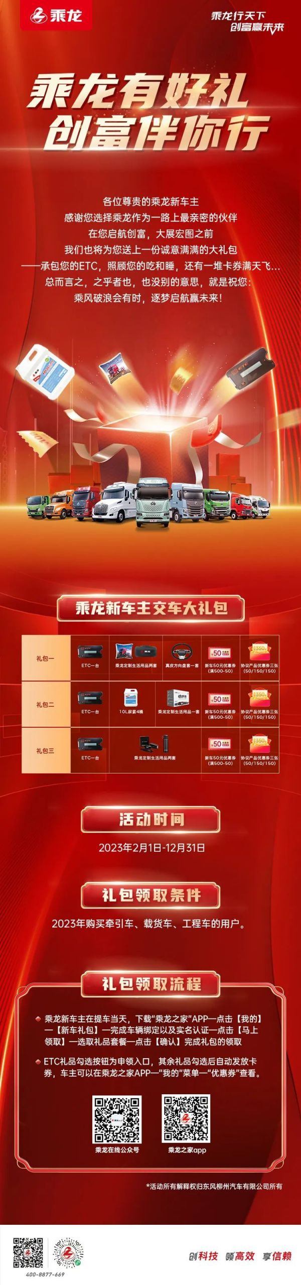 乘龙有好礼,创富伴你行!买车就送乘龙交车大礼包!