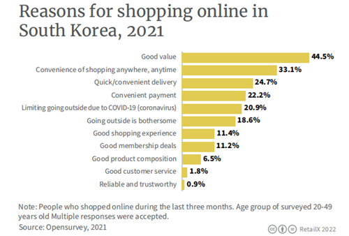 近年来,韩国线上零售额占比不断增加,网购越来越成为韩国人离不开的生活方式。