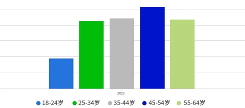 截至去年,韩国网购用户已超4000万,其中45-54岁年龄段的用户占比最高。