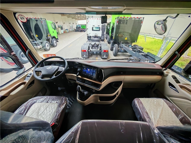 车辆高颜值驾驶室,融合东方美学与“聚宝盆”前脸设计,寓意财源广进,为卡友的创富之路送上美好祝福。全新升级的高维设计后视镜,视野更佳、风阻更低。内饰采用乘龙HK高端旗舰车型同款造型与套色方案,视觉与触感全面进阶,让卡友在创富路上尽享尊荣。