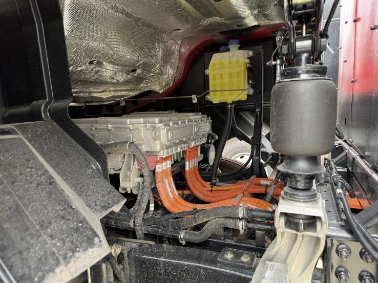 对于常年穿梭于西南地区复杂路况的卡友而言,动力是关乎效率与安全的生命线。TE86搭载的大功率永磁同步驱动电机,拥有510kW的峰值功率与3100N·m的惊人扭矩。这套动力心脏意味着什么?它意味着车辆在面对长距离、高难度的爬坡路段时,能持续输出强劲而稳定的动力,重载起步更从容,坡道超车更有力。